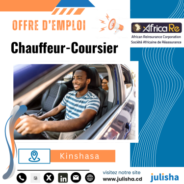 Africa Re annonce la vacance du poste de Chauffeur-Coursier dans son Bureau de Contact de Kinshasa en République Démocratique du Congo, poste est classé MS, Agent Administratif.