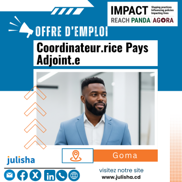 Sous la supervision hiérarchique de la ou du représentant.e pays IMPACT en RDC, la ou le coordinateur.rice pays adjoint.e assurera la coordination interne et la supervision des activités de recherche, et contribura à la gestion des opérations.
