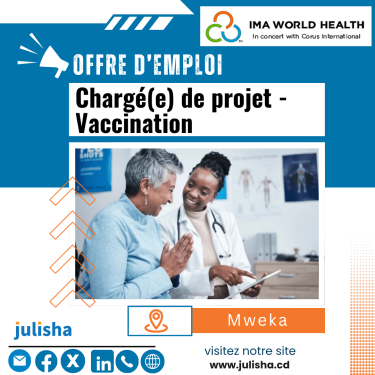 Chargé(e) de Projet –Vaccination renforcée - KASAIMweka - - Corus International Jobs