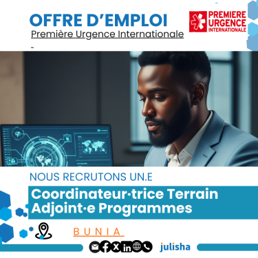 « Première Urgence Internationale est présente en RDC depuis plus de 20 ans. Ces dernières années, PUI a renforcé ses interventions à l’Est de la RDC, notamment dans la province de l’Ituri confrontée à une crise sécuritaire qui pousse des milliers de personnes à se déplacer et à vivre dans des conditions précaires. La capacité opérationnelle de Première Urgence Internationale repose sur la qualité de ses interventions. Le poste d’Adjoint.e Coordinateur Terrain joue un rôle important dans le maintien et l’amélioration de la qualité de ses programmes. Si vous avez des compétences dans ce domaine, votre place est ici. »