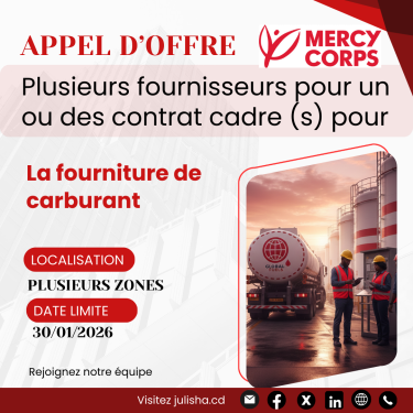 soumissionner dûment remplis doivent être soumis à Mercy Corps au plus tard le 30 janvier 2026 à 17h00 heure de