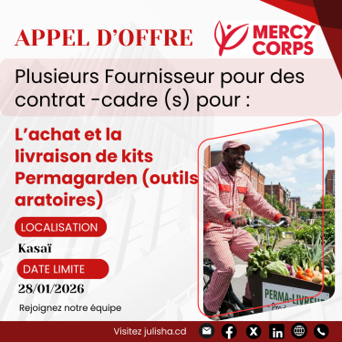 vis d'appel d'offres – MC TSH PR139317 Appel d’offres pour l’achat de kits Permagarden (outils aratoires) au Kasaï.
