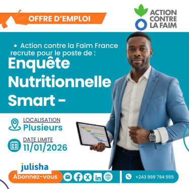 Sous la supervision de l'Adjointe Directeur Pays - Programmes, vous assurerez le développement et la mise en oeuvre de la stratégie de surveillance nutritionnelle de la mission en RDC, coordonnerez et appuierez techniquement la mise en oeuvre et le suivi des évaluations nutritionnelles de qualité (y compris SMART, SMART Rapide, SQUEAC et autres évaluations selon les besoins), et assurerez l'analyse des données nutritionnelles et le renforcement des capacités locales (PRONANUT, SNSAP et partenaires locaux).