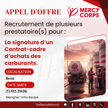 Mercy Corps recherche un ou plusieurs prestataire(s) pour la signature d’un