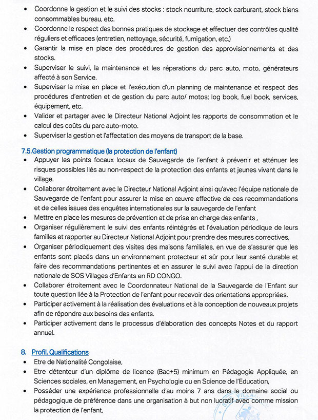 Coordonnateur(trice) de Prise en Charge Alternative/SOS VE(SOS Village d'Enfant)