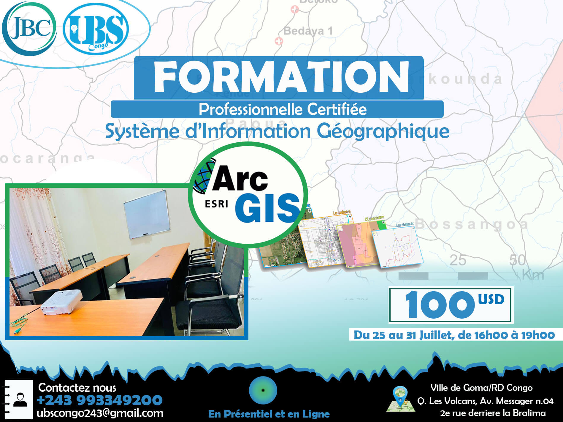 En partenariat avec JULISHA BUSINESS CONSULTING, le centre de formation UBS CONG vous organise une session de formation en Système d’Information Géographique (SIG) avec le Logiciel ArcGIS.